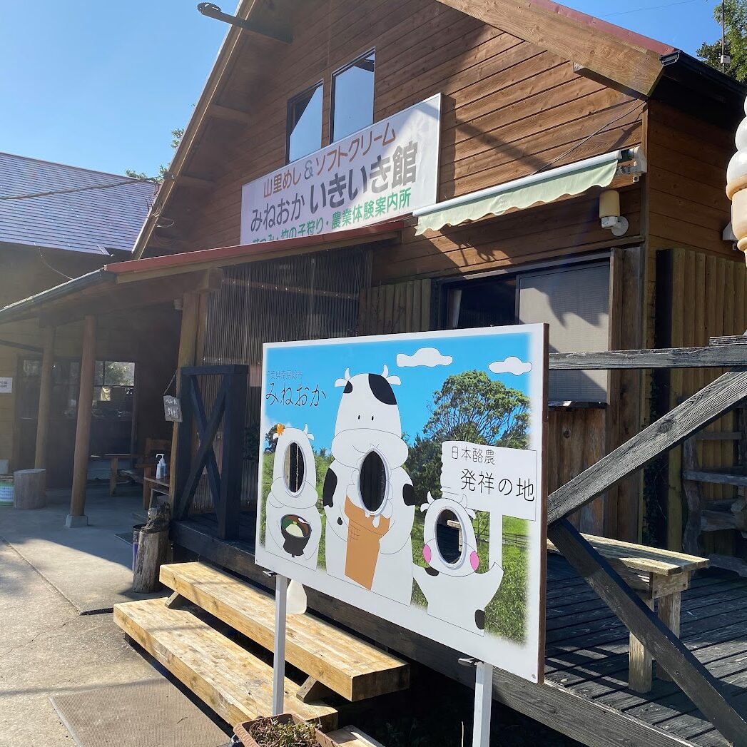 「酪農の里を訪れた人達に休む場所を提供したい!」この思いで先人たちが20年前に築き上げた場所「みねおかいきいき館」では、周辺地域の新鮮な食材をふんだんに使った料理を提供しています。定番メニューで人気のみねおか丼や、ゆずが香る野菜たっぷりのかき揚げが乗ったうどんやそば。酪農発祥の地らしく濃厚なアイスクリームや低温殺菌牛乳などもご堪能いただけます。