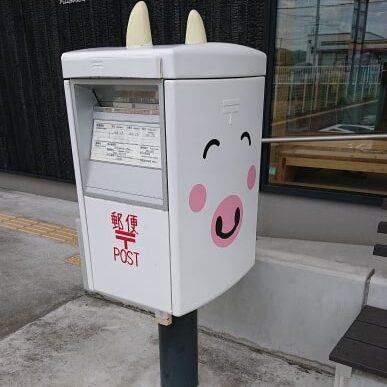 南房総の丸山郵便局には、白い牛をモチーフにしたポストが設置されています。